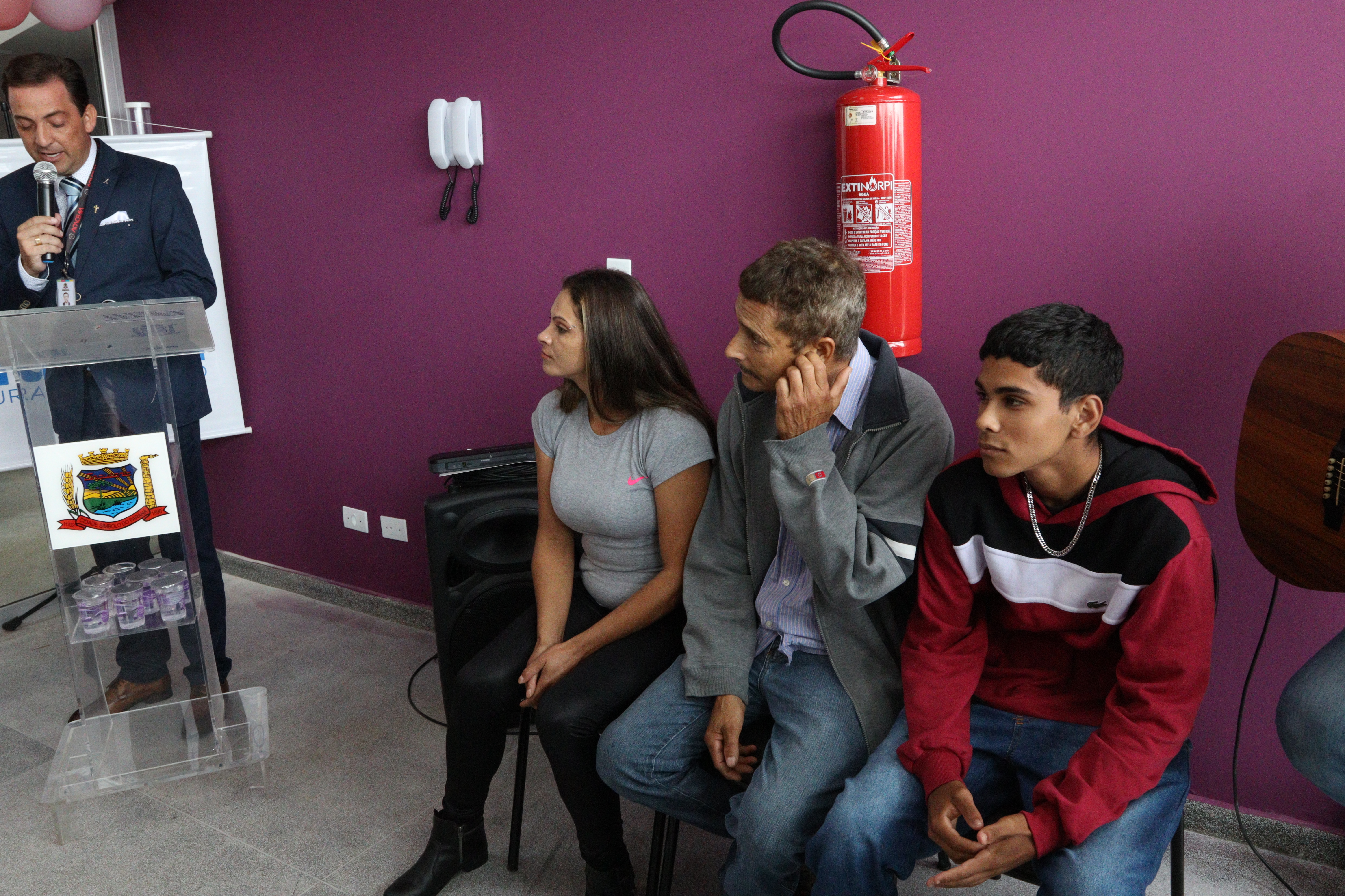 Familiares de Eliane de Lima Purger, vítima de feminicídio que foi homenageada com o nome do CRAM