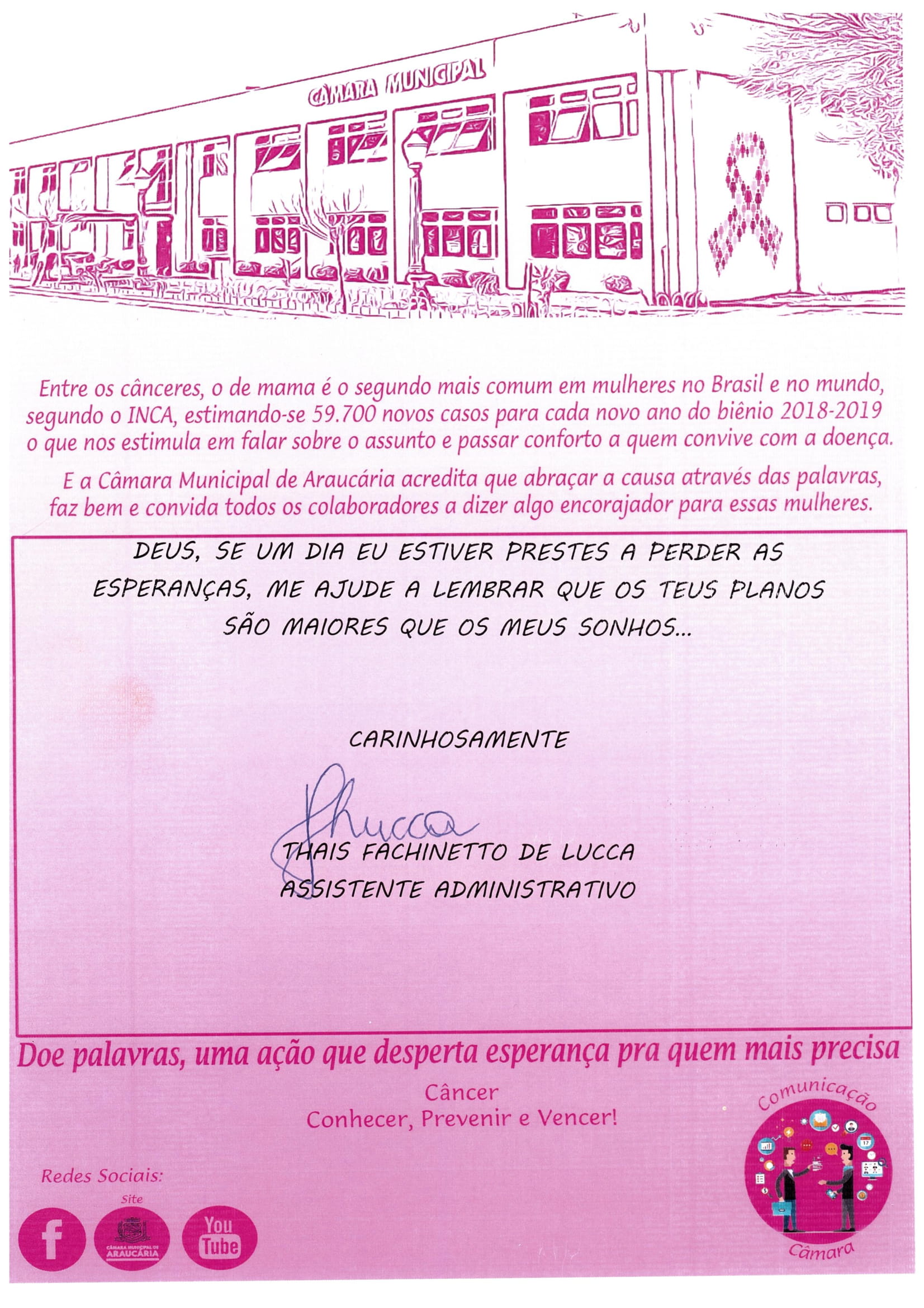 Mensagens dos Colaboradores Outubro Rosa